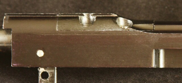 The hole in the left side of the receiver for securing the barrel to the receiver was added